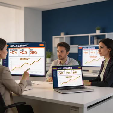 Gestionamos campañas publicitarias (Meta Ads, Google Ads) enfocadas en generación de leads y ventas.